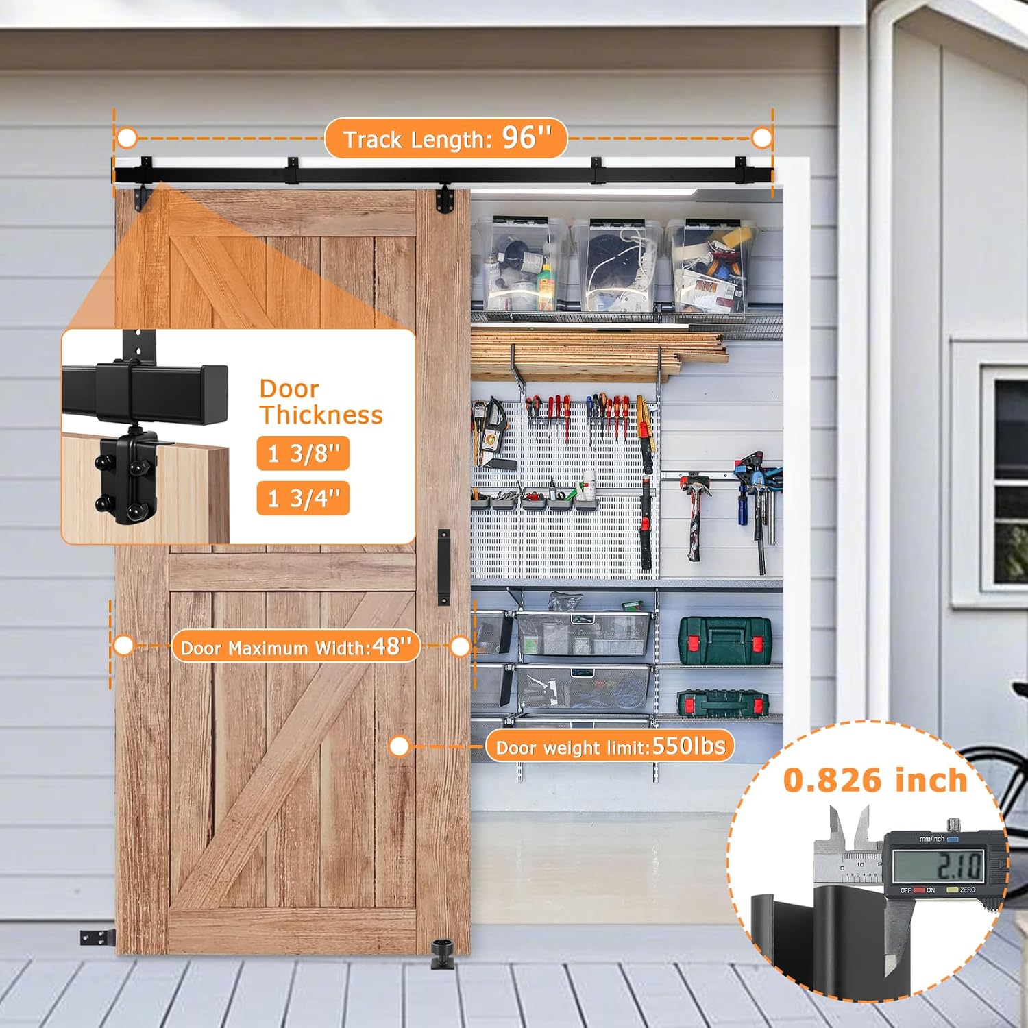 8FT Box Rail Exterior Barn Door Hardware Kit, Heavy Duty Sliding Barn Door Hardware, 550 lbs Capacity, Wall Mount Barndoor Hardware Kit for Exterior (Doors Not Included)