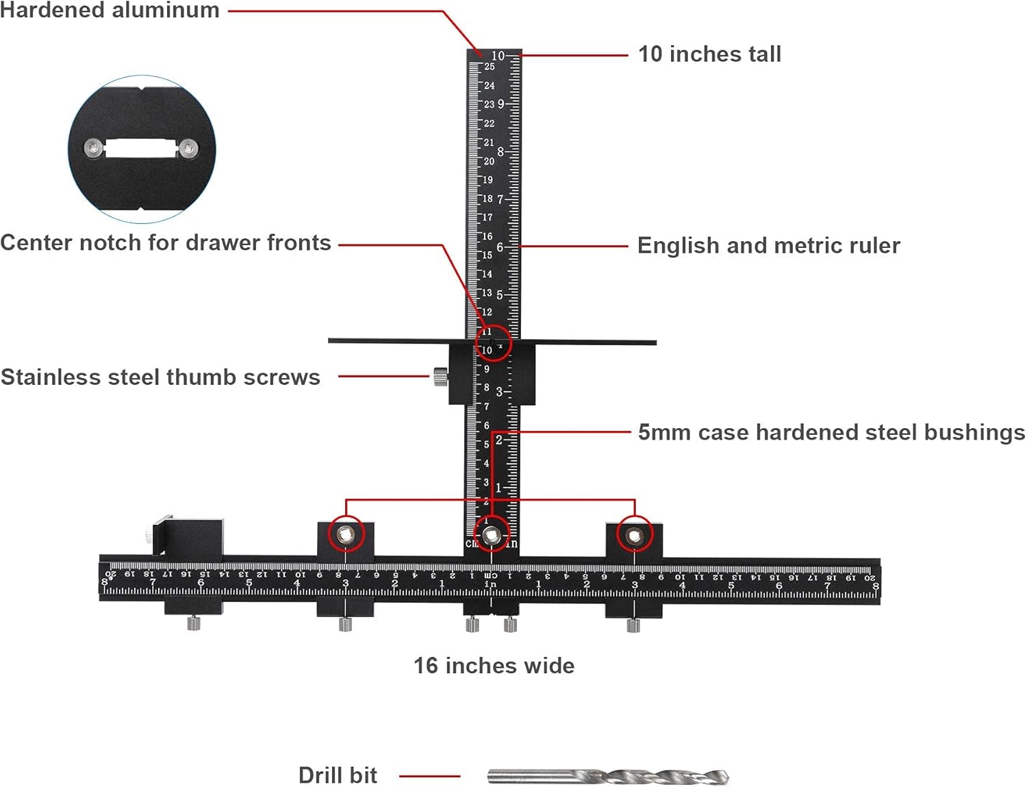 Cabinet Hardware Jig for Handles, Adjustable Template with Convenient and Precise Installation for Door and Drawer Knobs,Pulls,Tool Accessories Jig of Aluminum Alloy