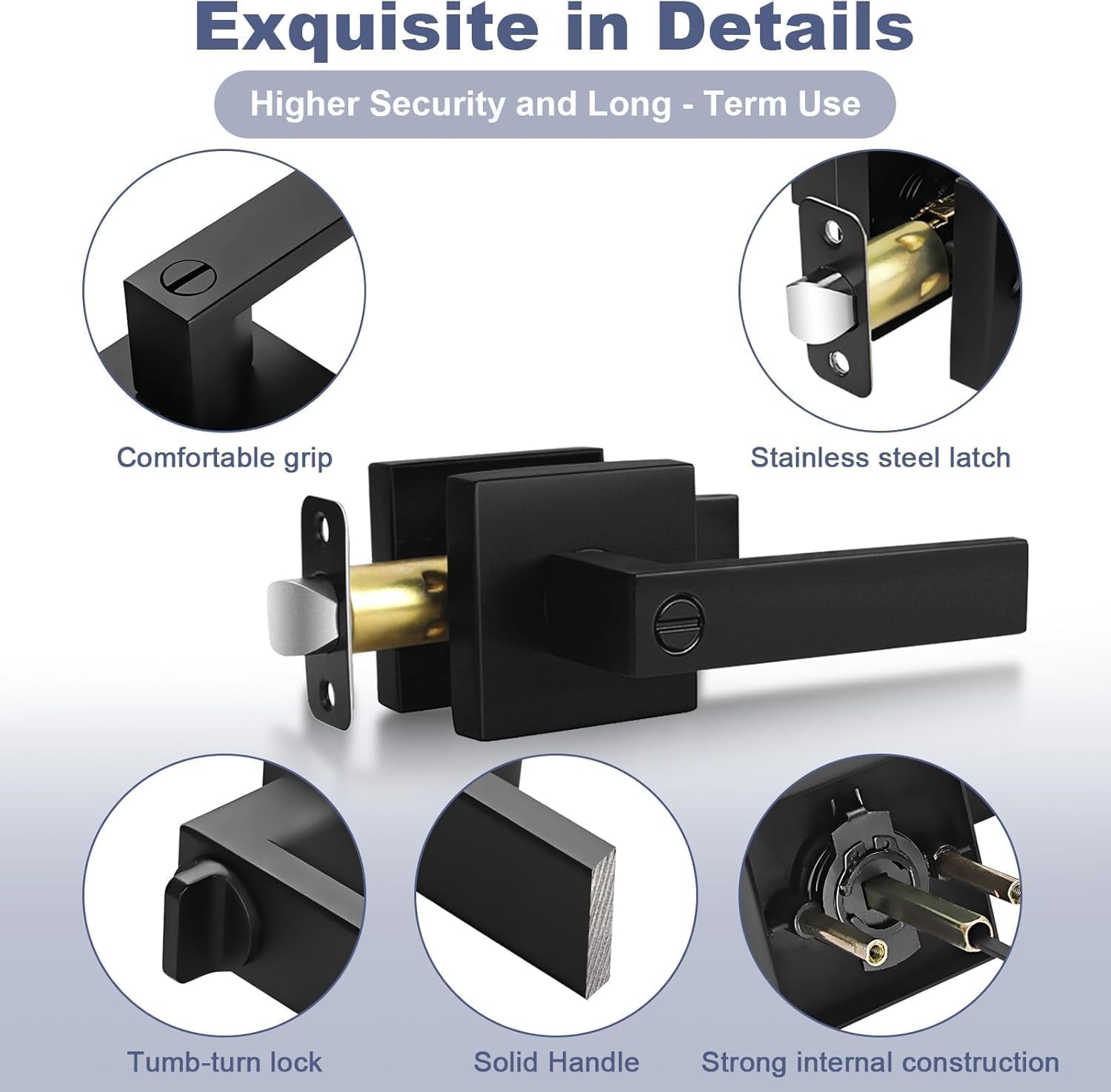 Estmoon 5 Pack Matte Black Door Handles Interior Door Knobs, Home Improvement Keyless Privacy Door Lock, Heavy Duty Zinc Alloy 2.07 lb Door Leverset for Bedrooms Bathrooms