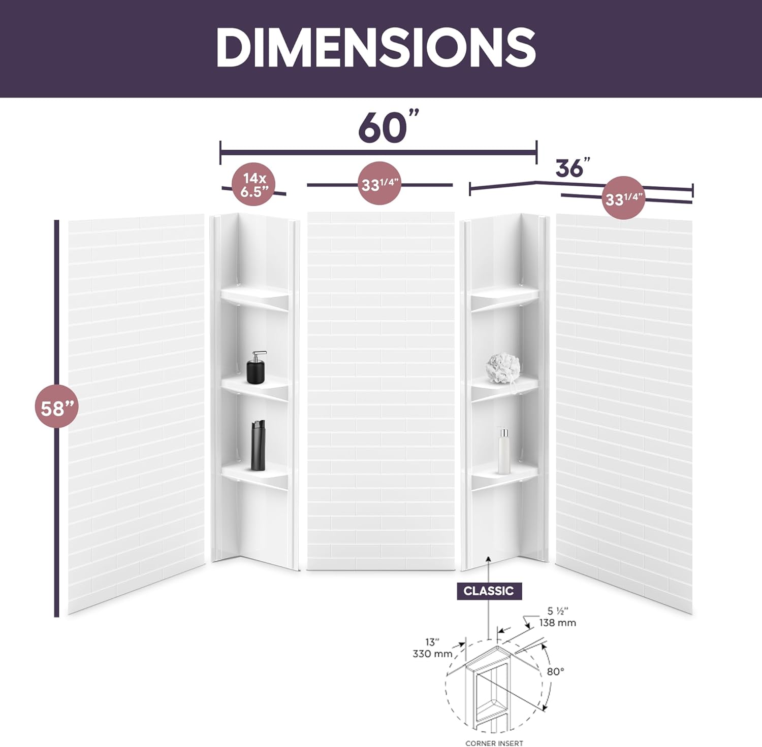 Transform your bathroom into a stunning oasis with our tub and shower wall panels. Our bathtub wall surround panel and shelf unit kits are the perfect solution for quick and affordable bathroom renovations. Say goodbye to dull and faded walls and hello to a luxurious and vibrant space! What sets our products apart is their versatility. Choose from two durable materials, acrylic or polystyrene, and two height options, 58 or 80 inches, to suit your specific needs. With five attractive patterns to match any decor, you can create a personalized and stylish bathroom. The 3 spacious panels and 2 corner shelf units provide ample storage space for bottles of different sizes, keeping your essentials within reach. Installation is a breeze with our quick and easy process. These tub wall surround panels can be directly installed on drywall, eliminating the need for messy grout or specialized tools. With overlapping panels, you can achieve an optimal seal. Just apply silicone sealant to ensure 100% waterproof protection and a durable finish. The lightweight construction makes it easy to carry and maneuver around corners, edges, and wall angles. You can even cut and shape the panels to fit any space for a custom finish that truly stands out. Our textured multilayer construction adds depth and dimension to your bathroom and shower walls, instantly elevating the overall aesthetic. Plus, with advanced color technology, our shower wall panels are resistant to discoloration and fading, ensuring a vibrant and stylish look for years to come. Not only do these wall panel and shelf units enhance the visual appeal of your bathroom, but they are also designed to withstand wear and tear. The waterproof quality makes them ideal for wet areas such as bathrooms, tubs, and showers, providing a reliable and long-lasting solution. Whether you're a DIY enthusiast or looking for decorative options, our Tub and Shower Wall Surround is the ideal choice.